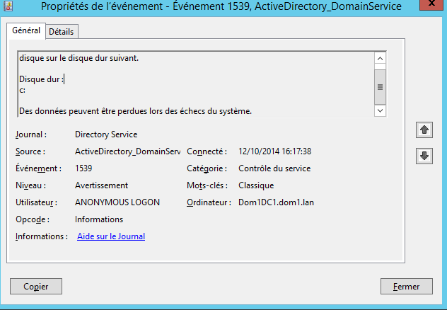 Hors si votre serveur HyperV n’est pas à jour, il existe un risque de corruption de l’AD, car l’hyperviseur fait croire au contrôleur de domaine que le cache est bien désactivé alors que ce n’est pas le cas. Vous trouverez plus de détails dans le lien suivant : https://support2.microsoft.com/kb/2853952?wa=wsignin1.0