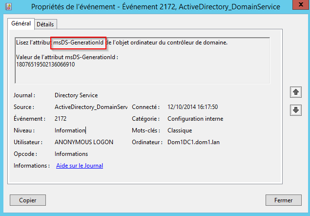 A partir de Windows 2012 et si l'hyperviseur supporte le "GenerationID" il est possible d'utiliser des fonctionnalités supplémentaires tel que les "snapshot" ou le clonage de contrôleur de domaine.
