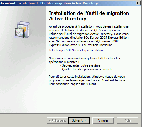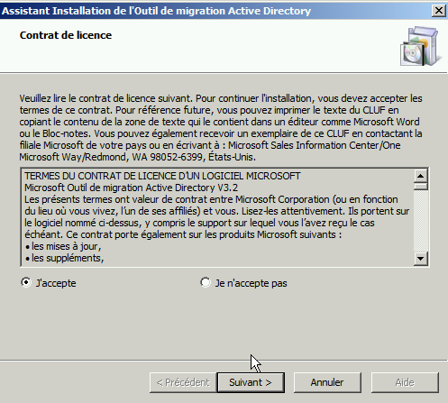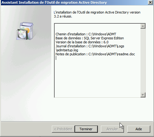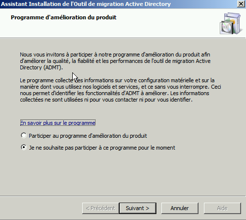 L’installation d’ADMT se fait pour notre exemple sur un serveur dédié en Windows 2008 R2. L’installation de l’outil est simple est rapide par l’intermédiaire de son assistant :